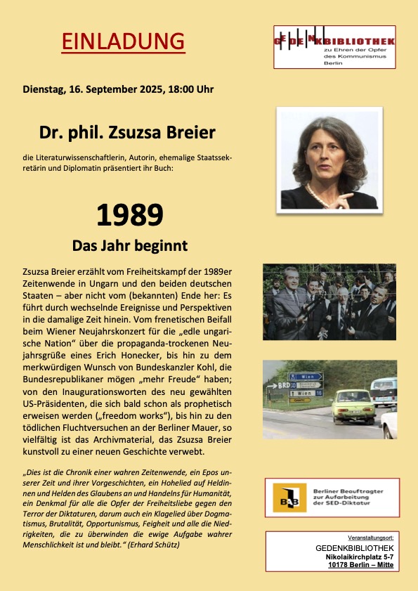 LESUNG Der Freiheitskampf der 1989er Zeitenwende in der DDR, Ungarn und der Bundesrepublik.